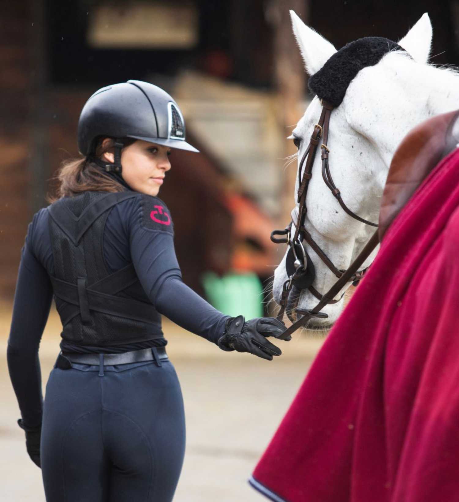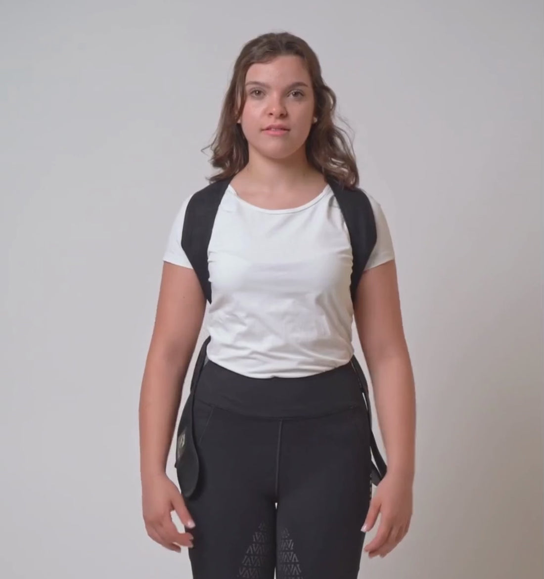 EquiPosturaPro follows your silhouette and can be worn easily over your clothes, while staying discreet under a jacket. Of course, if you wear it directly over a T-shirt it will remain visible, but its black color blends very well with dark outfits.